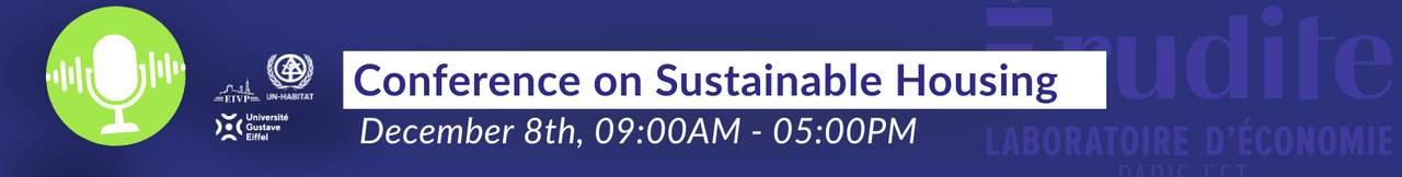 Le lundi 8 décembre, de 09h00 à 17h30, le laboratoire ERUDITE anime une conférence bilingue sur le thème de l'habitat durable. Découpée en 4 tables rondes, elle mobilise des experts divers de l'université Gustave Eiffel, ONU-Habitat et au-delà... Ainsi que les étudiants du master DEIPM, qui présenteront les résultats de leur hackathon.